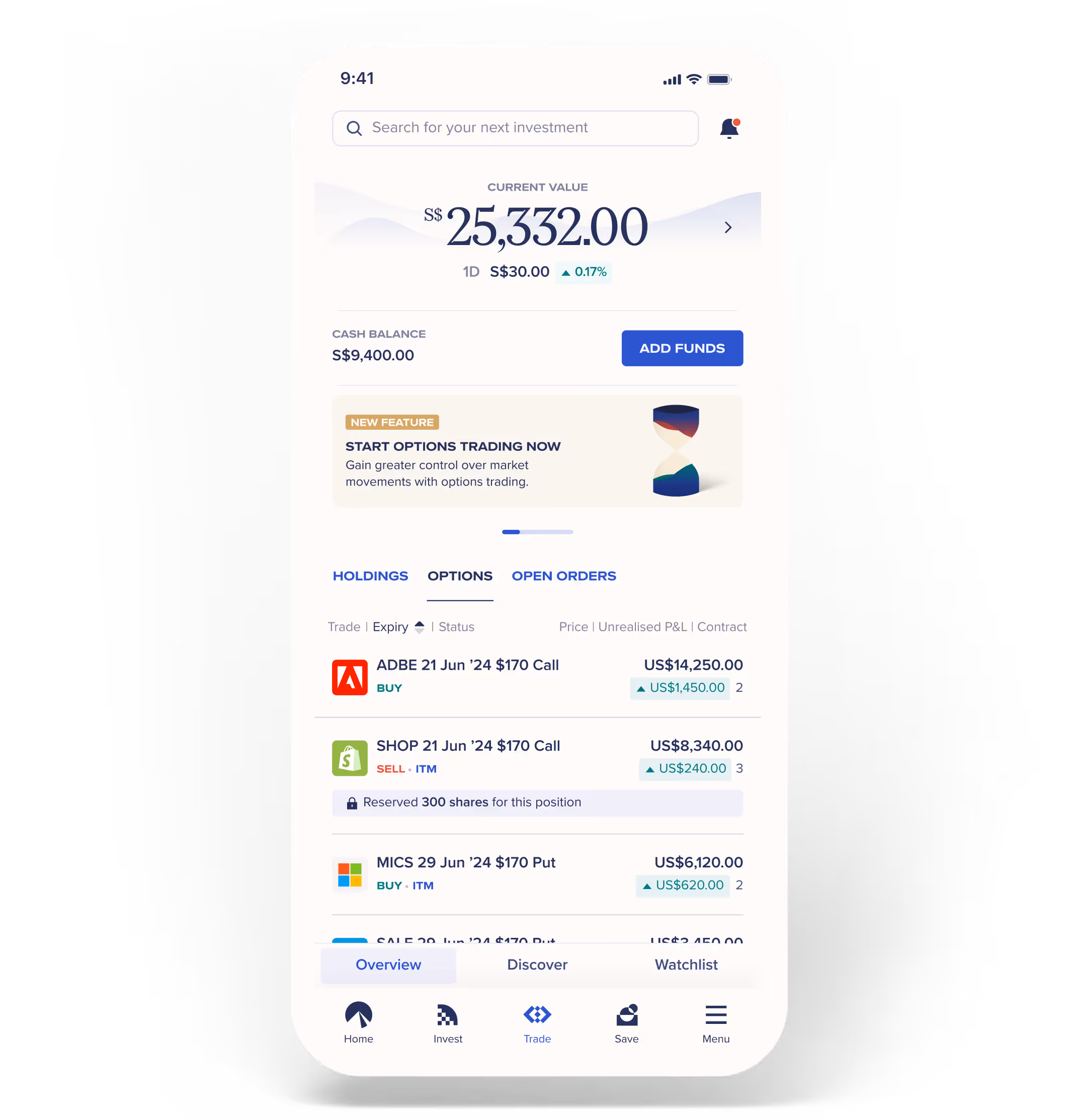 Go beyond trading stocks and ETFs – now you can also protect your investments, boost capital efficiency, and earn income with Options on Syfe Brokerage.