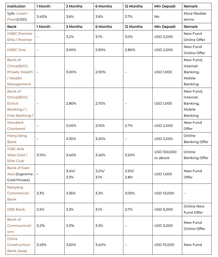 Summary|Best USD Time Deposit Rates in Hong Kong (March 2026)