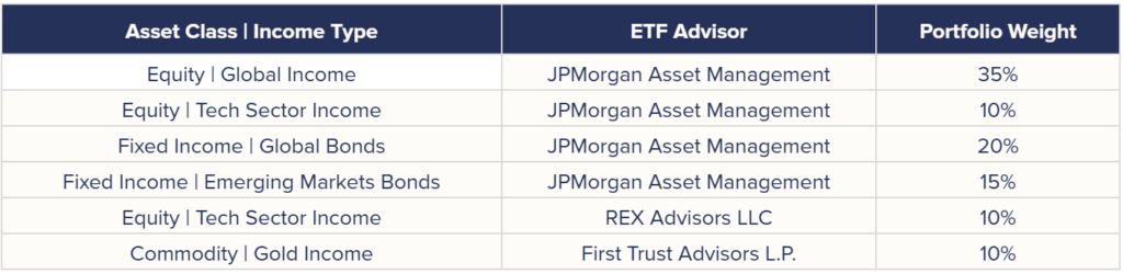 What makes the strategy distinct is the use of options by the underlying ETFs. Selling out-of-money covered call options on stocks or indices is expected to generate more income from the equity portion of the strategy than dividends.