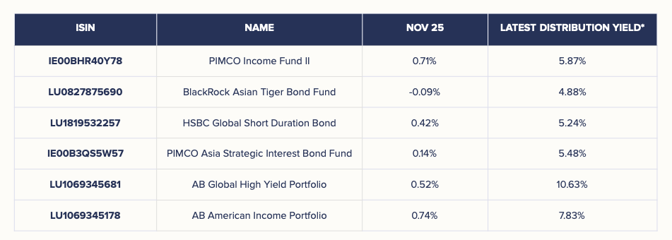 Global markets paused in November after a strong run through most of the year, as investors navigated an uneven macro backdrop marked by US policy uncertainty, mixed labour trends, and the effects of the 43-day government shutdown. Softer US labour indicators—including rising jobless claims and weak consumer confidence—helped stabilise Treasury yields. US government bonds led major fixed income categories with a +0.6% return as markets priced in a Federal Reserve rate cut in December.