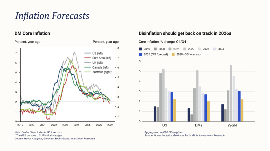 Markets enter 2026 in a period of transition rather than disruption. Inflation pressures are easing, growth is slowing but holding up, and monetary policy is moving away from peak restriction. At the same time, elevated valuations, market concentration, and rising capital intensity mean that returns are likely to be more selective and harder earned than in the immediate post-pandemic rebound.