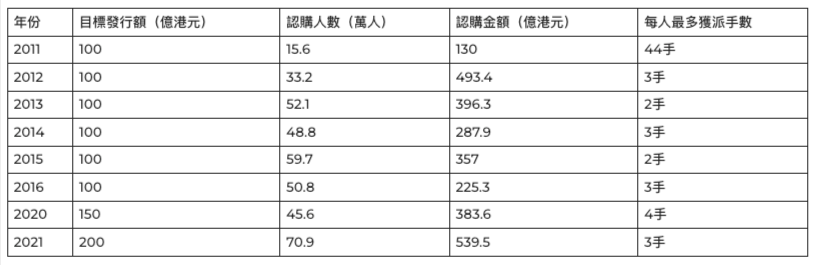 歷年iBond認購情況|認購人數、認購金額、分派手數