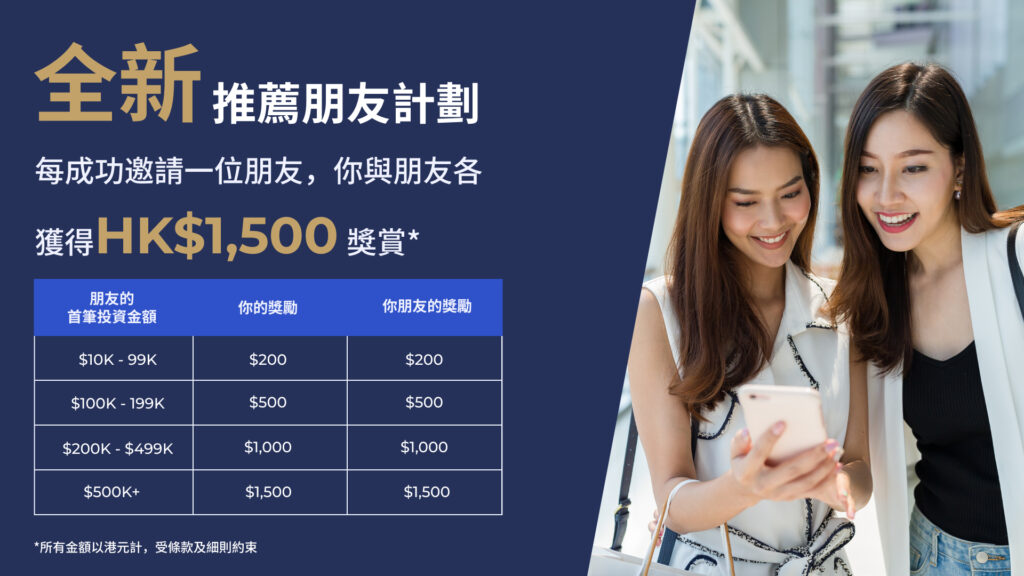 每成功邀請一位朋友,你與朋友各可獲高達HK$1,500獎賞*!