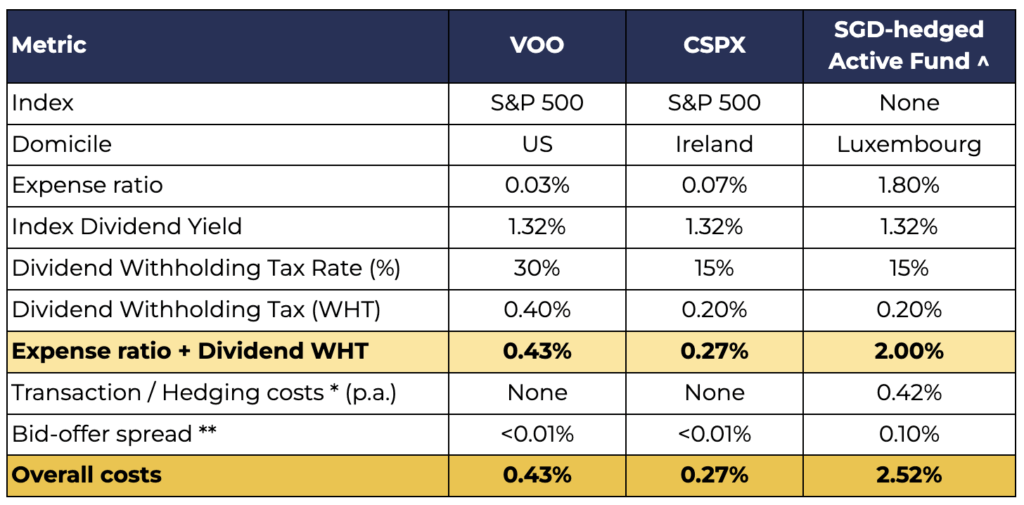 ^SGD Active fund references active funds such as Franklin US Opportunities Fund*Transaction and hedging costs for funds are estimated to be 0.5% on average based on Lumint data.