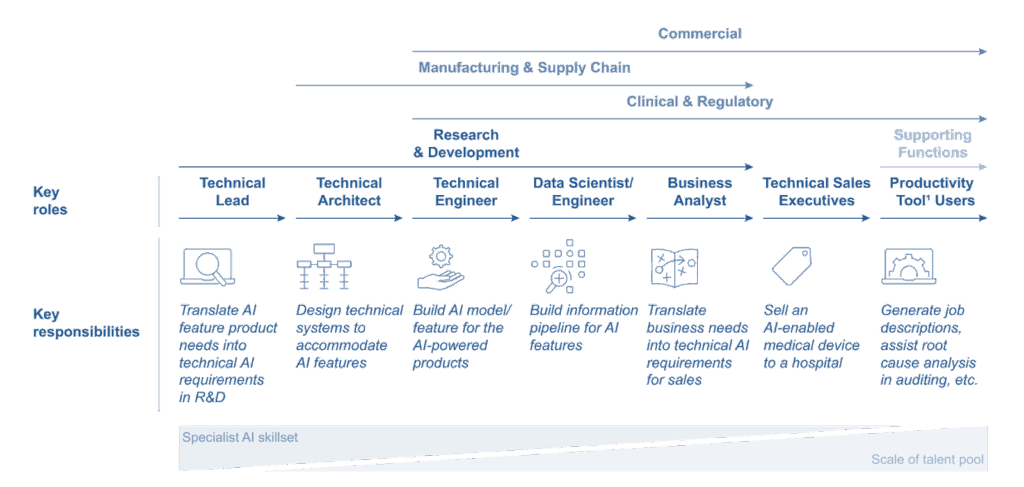 Below is a chart that summarised key AI roles and responsibilities across the medtech value chain: