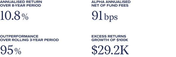 References to “beating the market”, “outperformance” or “alpha” reflect the portfolio’s investment objective and strategy and do not constitute a guarantee of future results. Active management involves investment judgement and may result in periods of underperformance relative to the benchmark.