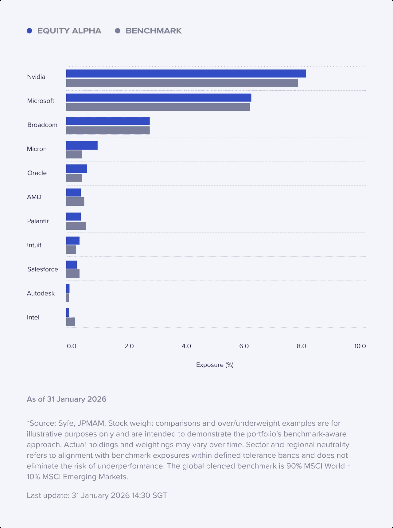 By combining J.P. Morgan & Syfe’s portfolio construction expertise with institutional research capabilities, Equity Alpha gives individual investors access to an approach that was historically available only to large institutions.
