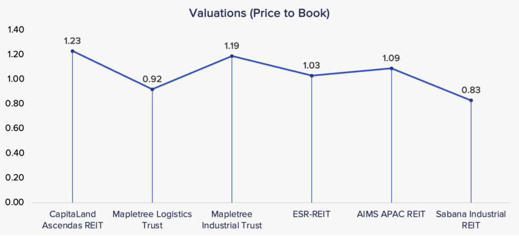 With macro headwinds casting a shadow of uncertainty on several sub-segments of the Industrial REIT sector, most leading REITs are trading in the 1.0–1.2X range with distribution yields around 6%–7.5%. Given the weak returns generated in the past 1-year and 3-year period, including negative returns by several of them, investors appear cautious in the current uncertain economic climate.