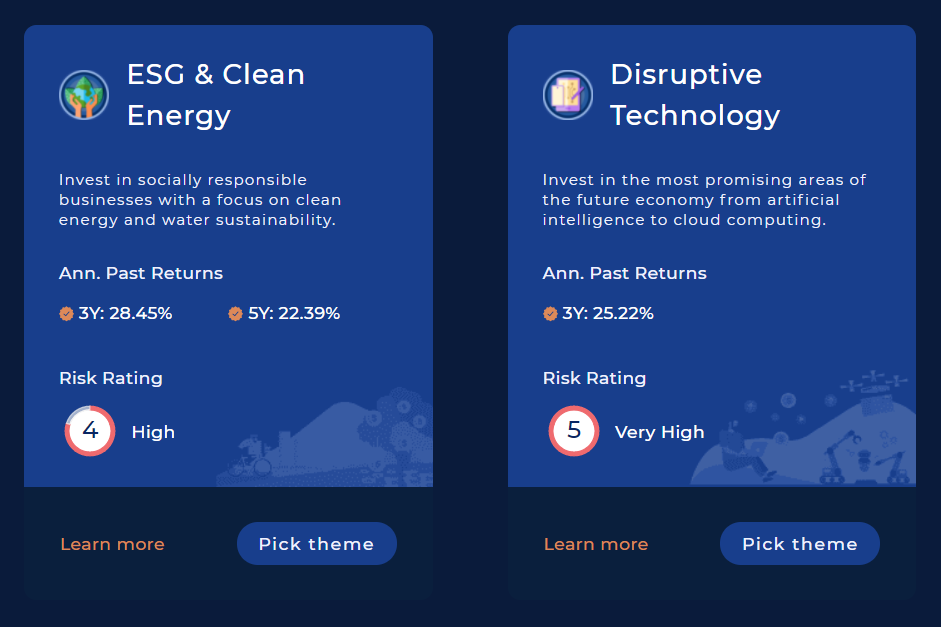 The four Syfe Theme portfolios are designed to complement our Core and REIT+ portfolios. For instance, you may get exposure to a broadly diversified mix of stocks, bonds and gold through the Core Growth portfolio, and then add the ESG & Clean Energy portfolio as a secondary holding to capitalise on the sustainability movement.